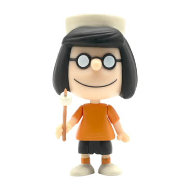 The Marcie 3.75" ReAction Figure comes with a marshmallow on a stick, and is on a cardback featuring art from the 1987 Mr. Sack comic storyline often cited by Charles Schulz as a favorite.