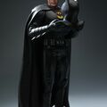 The movie-accurate figure captured Michael Keaton as Batman in his Modern Suit from The Flash in one-sixth scale with exquisite details delicately and beautifully restored. Features a newly developed Bruce Wayne head sculpt and a Batman cowled head with interchangeable lower faces, both heads come with separate rolling eyeballs system for angle adjustments. The specialized body highlights Batman's muscular form also allows great articulation, a highly detailed Batsuit and interchangeable fabric bat capes to replicate the texture detail, signature Bat gadgets including line launcher, rope attached batarang, ninja wheels, remote, bomb timer, and a specially designed LED lighted display stand with Batman logo to set up your own Batcave.