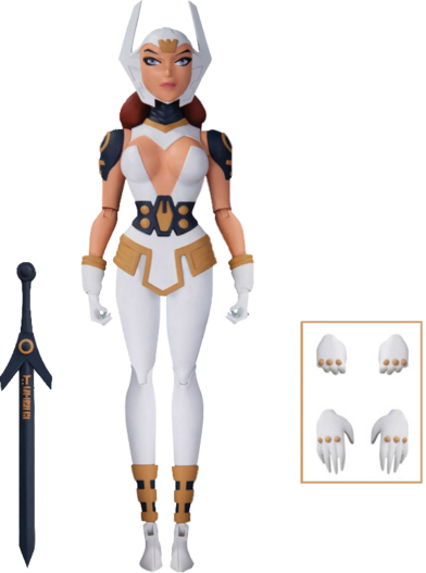 In an alternate universe, the Justice League is a brutal force that maintains order on Earth. This 6” action figure depicts Wonder Woman as she was seen in Justice League: Gods and Monsters. In Gods and Monsters, behind the Wonder Woman costume is Bekka, who was the bride of the New God Orion. Wonder Woman is wearing a white costume instead of the more commonly seen red, blue and yellow. She comes with a sword and 3 sets of interchangeable hands.