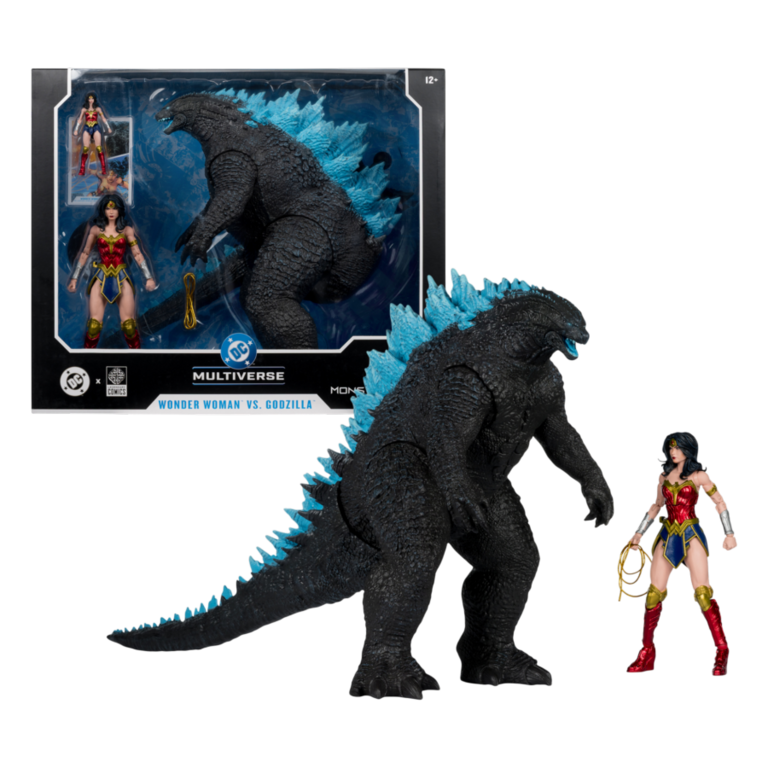 – Includes 7" Wonder Woman action figure, 3" Wonder Woman mini-figure, and 12" Godzilla figure (with Atomic Blast paint deco)