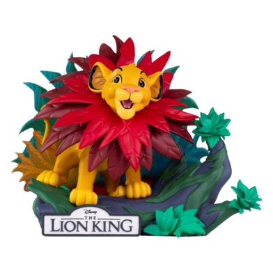 Featuring Simba wearing a mane of leaves and perched atop a log, this cute and colorful figurine showcases the carefree and playful attitude of the Pride Lands future mighty king... so enemies beware!