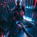 The highly accurate figure is crafted based on Miles Morales in 2020 Suit from the video game, includes a newly crafted masked head with LED light up function and multiple interchangeable eye pieces for different expressions; a newly developed body; 2020 Suit with LED light up chest panel to recreate the signature design; finely tailored jacket with red Spider emblem; interchangeable hands for signature poses; assorted spider-web effect accessories; and a dynamic figure stand with cybernetic workshop inspired backdrop for complete display.