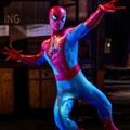 – One (1) newly developed metallic blue and red colored Spider Armor – MK IV Suit with teal colored luminous reflective cobweb patterns appearing under specialized LED light unit