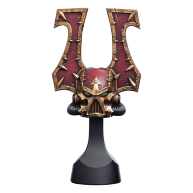 With unmatched attention to detail, Weta's artists bring the ferocity of the Khorne Berzerker to your collection. This replica captures the savage beauty of the helmet, from the deep crimson hues to the towering brass-trimmed crests.