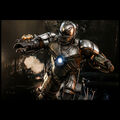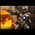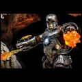 The stunningly detailed 1/6th scale Iron Man Mark I collectible figure is crafted based on the first suit, features a newly painted helmeted head sculpt of Robert Downey Jr. as Tony Stark; highly-accurate Mark I armor parts made in diecast material with real wires and cables attached showcases armor �s complexity; multiple layers of steel-like painting in metallic silver and bronze to modify texture and weathering effects; LED light-up functions on Arc Reactor and forearm; highly-accurate engine motor on the back with rotary design simulating a running engine; the iconic weapon Flamethrower and effect accessories to recreate scenes from the movie; and a themed diorama base enhancing the collection experience.
