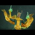 Standing proudly, Classic Loki summons great levels of magic to cast a massive, miles-long realistic project of Asgard that the monstrous Alioth attempts to feed on. Furious at the lack of nourishment, Alioth advances towards Classic Loki, who rises to his feet, and in one final display for its attention, the elder trickster shouts "Glorious Purpose!" as Alioth devours him leaving only his golden horns behind.