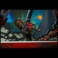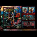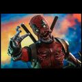 The incredibly realistic figure is crafted based on the appearance of Zombie Deadpool from Marvel Zombies comic series. Features a newly developed masked head sculpt with disgustingly beautiful details; interchangeable eye pieces and rotten mouth pieces with exposed teeth to create numerous combinations of horrifying expressions; a finely tailored red and black suit specially applied with distress effects; amazing paint work on damaged muscle tissue and exposed skeleton parts; an array of weapons including a pair of katanas, pistols, a dagger, and an arrow attachable to the head sculpt; recreation of Deadpool Crop members including zombified flying Headpool with jaw articulation, and Squirrelpool; a comic book themed backdrop with Dogpool and Duckpool joining the gang; multiple zombified hands for poses; and a specially designed dynamic figure display stand.