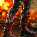 – One (1) red, black-colored leather-like suit with distressed detailing