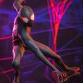 The greatly-poseable figure features a newly developed Miles Morales head sculpt with separate rolling eyeball system and a masked head with multiple pairs of eye pieces to create different expressions. A newly designed body that depicts his physique, comes with a black Spidey suit is specially made with a semi-transparent yet stretchable fabric, while the under layer gives off a metallic blue shimmering effect. His trendy outfit is faithfully recreated through careful choice of fabric, from the outer coat, hoodie, denim vest, jersey top to the denim jeans and sculpted sneakers. More detailed accessories include The Spot diorama accessories, comic book, assorted web accessories, spider sense effect graphic, multiverse themed backdrop, and a dynamic figure stand.