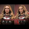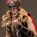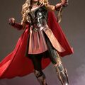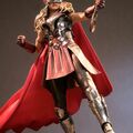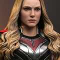 The highly-detailed collectible figure is beautifully crafted based on the appearance of Natalie Portman's as Mighty Thor in the movie, features a helmeted head sculpt, a newly developed head sculpt with blonde wavy hair sculpture, a newly designed body with seamless arms, finely tailored body armor in metallic silver and red with a red fabric cape, sculpted accessories include a damaged Mjolnir with LED light-up function, a Mjolnir handle with lightning effect, and a figure stand.