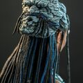 – Intricately sculpted black ponytail dreadlock hair sculpture