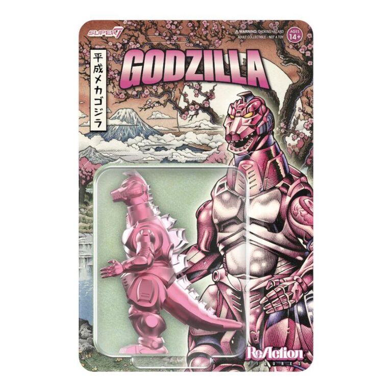 Sakura season is in full bloom! A cherry blossom-inspired colorway reveals both the power and beauty of this Mechagodzilla ’93 ReAction Figure. Inspired by the film, Godzilla vs. Mechagodzilla II, this 3.75” scale articulated action figure features a metallic sheen in shades of pink. The cherry blossom, a symbol of fleeting joy and beauty, is reflected in a unique color palette that radiates both strength and ingenuity. This figure also comes packaged in a full-color, intricately illustrated blistered card-back—as if Mechagodzilla were taking a stroll among the cherry trees of Japan. Before the last blossom blooms and falls, hurry to add this Cherry Blossom Festival Mechagodzilla ReAction Figure to your collection!