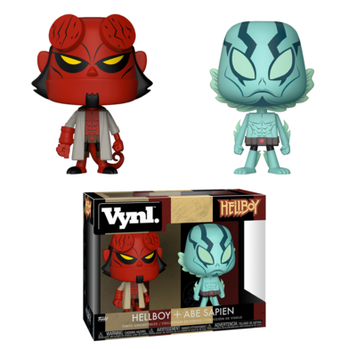 Vynl. take a new approach to collecting by showcasing the intricate relationships between beloved characters through a playful new aesthetic and display-ready collector packaging. Each package will contain 2 stylised vinyl collectible figures. This pack features the Hellboy and Abe Sapien Vnyl. figures.