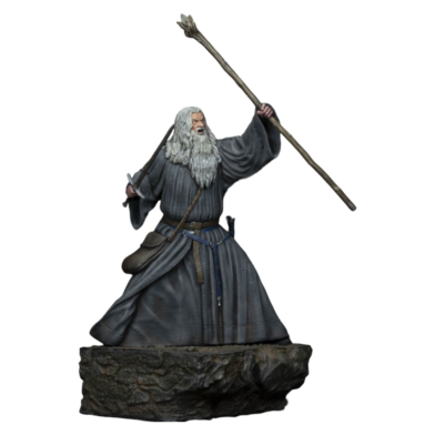 Embark on a magical, perilous, and wisdom-filled journey with everyone’s favourite Middle Earth wizard, Gandalf the Grey! This inspiring statue captures Gandalf in the iconic attire he wore in the Mines of Moria. Holding his position atop a rocky base, Gandalf grips a sword in one hand, and with the other, outstretched his staff with a battle cry. Elevated by a base of petrified soil from the Mines of Moria, this statue replicates the stand-off moment captured in the film.