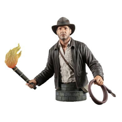 Measuring approximately 6-inches tall, this Indiana Jones and the Raiders of the Lost Ark Indiana Jones 1:6 Scale Mini-Bust features the hero with a torch and whip in hand.