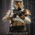 The highly-accurate collectible figure is meticulously crafted based on the appearance of Captain Enoch featuring a greatly detailed helmet and armors with crackle-effect painted in metallic gold, masterfully applied weathering effects, blaster, and a figure base!