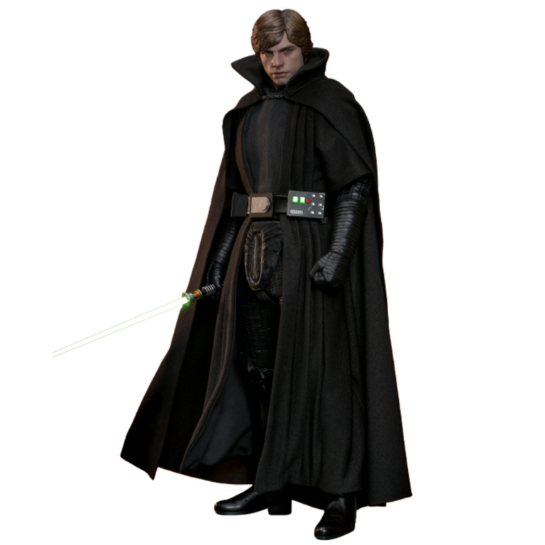 The highly-detailed Luke Skywalker collectible figure features a meticulously developed head sculpt with striking likeness and rolling eyeball function allowing positionable eye line, finely tailored armored suit inspired by the Dark Empire legend, LightsabersTM with LED light-up function, and a display base!