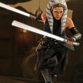The highly-accurate Ahsoka collectible figure features a meticulously crafted head sculpt with separate rolling eyeballs features and articulated head-tails, specialized physique, skillfully tailored outfit with fine details, a pair of lightsabers, interchangeable lightsaber blades emulating the weapon in motion, and a cloak.