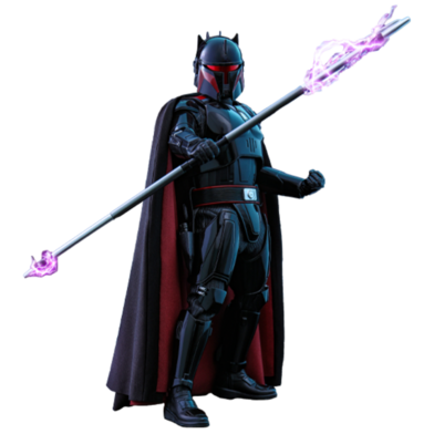 The highly-accurate collectible figure specially features a newly developed head sculpt with incredible likeness and rotatable eyes, detailed beskar helmet, armour and outfit, a jetpack, electrostaff in extended and collapsed mode, a blaster pistol, a whipcord, flamethrower effect accessory, a display base, and a crushed Darksaber hilt!