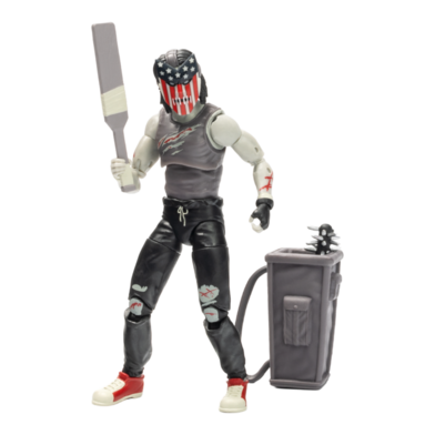 From the ripped sweatpants to the ripped biceps, you'll get a realistic feel from this figure. Even his weapons have seen better days, with the telltale signs of wrapped tape repairs done with incredible paint detail. Get ready for a first – Casey's iconic Urban Legend American flag mask is here, this version of Casey has never been done as an action figure before. This angular mask features sleek metal bar detailing across the mouth and a menacing eye design. This Exclusive Casey comes in a wicked grey scale paint treatment with select pops of color.