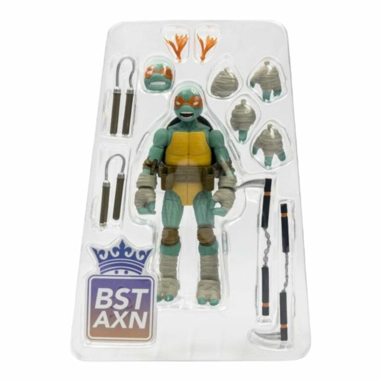 Inspired by the masterful artwork from comic legend Mateus Santolouco and fan favorite comic book publisher IDW, TLS has spared no detail with this masterful BST AXN IDW Comic inspired action figure set! Sold separately, each individual Turtle Hero is available to purchase and features 31 pts of articulation, multiple hand grips, signature weapons, multiple head portraits, a collector card, and packaging artwork provided exclusively by Mateus Santolouco for The Loyal Subjects! In the classic BST AXN scale (5” and up), with crazy poseability, the IDW Comic Book Edition TMNT Heroes come to life!