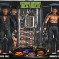This super-articulated, 7" scale action figure 2-pack includes Yoshi and Saki, plus interchangeable arms, hands and heads, removable shirts, 8 weapons, 2 versions of Splinter and cage with stand. Window box packaging.