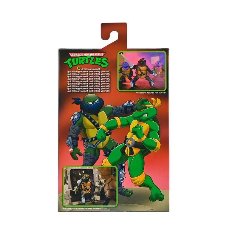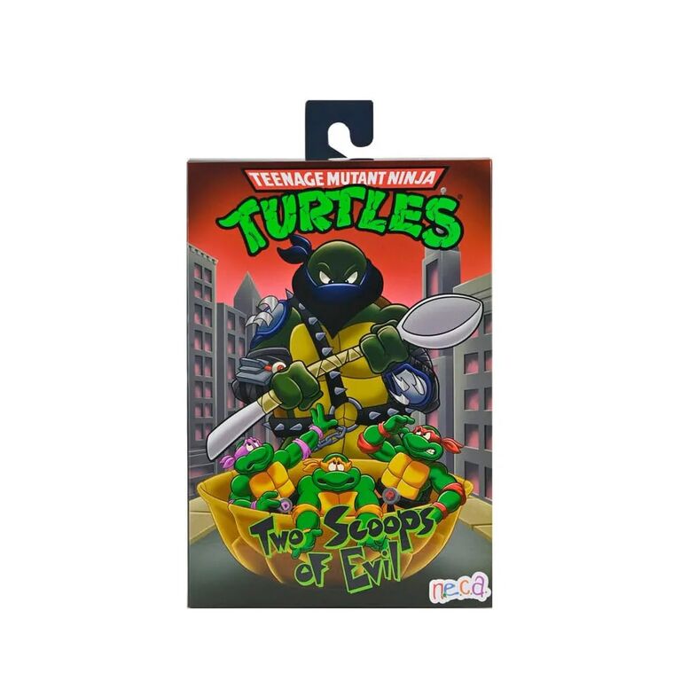 Leonardo journeyed through Donatello's portal and came back a changed turtle, now loyal to The Shredder and the Foot Clan. Appearing in issue #20 of IDW's Teenage Mutant Ninja Turtles: Saturday Morning Adventures comic and designed in house by NECA