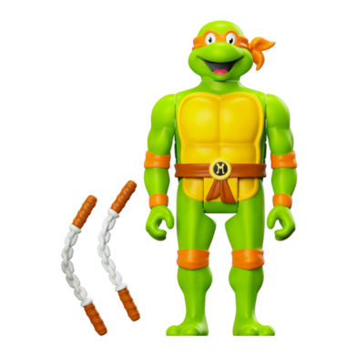Whether fighting the bad guys or hangin’ ten in the sewers, Michelangelo is always up for a good time! This 3.75” scale articulated Teenage Mutant Ninja Turtles ReAction Figure of Michelangelo is inspired by the classic animated series and includes a pair of nunchuck accessories. The cartoon-inspired Teenage Mutant Ninja Turtles ReAction Figure of Michelangelo is just the Turtle-Power boost your collection has been waiting for!