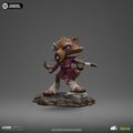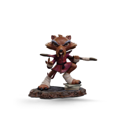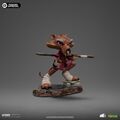 Ready for action, the wisest and most skilled anthropomorphic mutant rodent in New York fearlessly calls his opponents with the small index finger from his right hand, prepared to repel or attack with his staff positioned between his back and under his left arm, ready to be used like a Japanese Bo staff. A great master of Ninjutsu, dressed in his worn-out maroon kimono and black belt, the elderly brown-furred rat with long gray eyebrows rests his right leg on a pile of pizza boxes left by his adopted sons. Iron Studios presents the "Master Splinter – TMNT – MiniCo" statue, featuring the sensei of the four brother turtles who protect the city, in a Toy-Art style that has already won the hearts of fans and collectors worldwide!