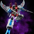 MDLX Coronation Starscream stands approximately 7.8" (20cm) tall to the top of its wings. It is equipped with threezero’s signature Die-cast Zinc Alloy and an engineering-grade plastic internal frame system with over 50 points of articulation.
