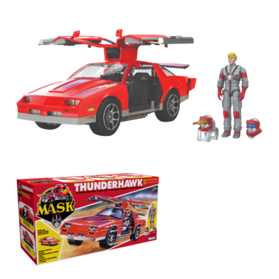 Strike from the skies with Thunderhawk! First released in 1985 and now reborn by The Loyal Subjects, this iconic sports car converts into a powerful jet fighter with just a push. With bold gull-wing doors that flip into wings and hidden weaponry for surprise attacks, Thunderhawk leads the charge!!