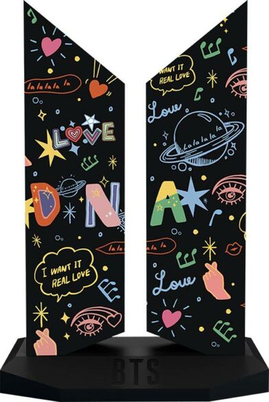 Measuring 7" tall and 4.5" wide, the Premium BTS Logo: DNA Edition takes the iconic shape of the 21st-century pop icons logo, visualized as a set of doors opening outward to possibility, and incorporates lyrics and vibrant doodles in celebration of RM, Jin, SUGA, j-hope, Jimin, V, and Jung Kook's stardom.