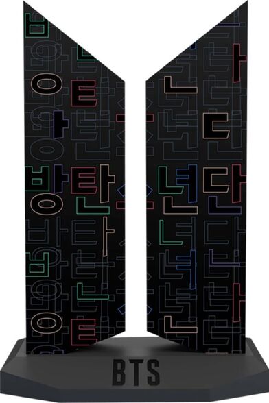 The Premium BTS Logo: Hangeul Edition features bright red, orange, blue, green, and purple BTS Hangeul font designs over the ARMY symbol on one side of the statue. The words in the center of the symbol are Bangtan Sonyeondan, the full version of the acronym BTS. These symbols exist in harmony, bringing together past and present in one elegant design and placing BTS right at the heart of the customers.