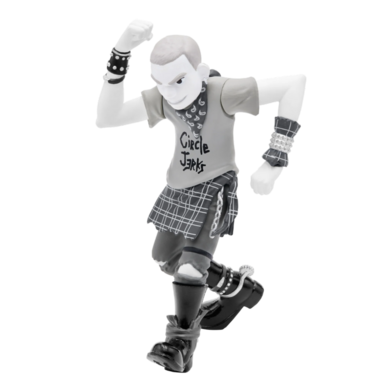 The latest 3.75" articulated Circle Jerks ReAction figure of Skank Man was inspired by those xeroxed show flyers stapled to light poles back in The Day, with his Punk Rock attitude ready to go wild in the streets.