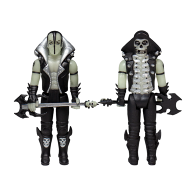 The official Super7 x Misfits – Jerry Only GLOW-IN-THE-DARK 3.75" ReAction Figure. Jerry comes armed with his Devastator bass and wearing his terrifying spiked Fiend vest!