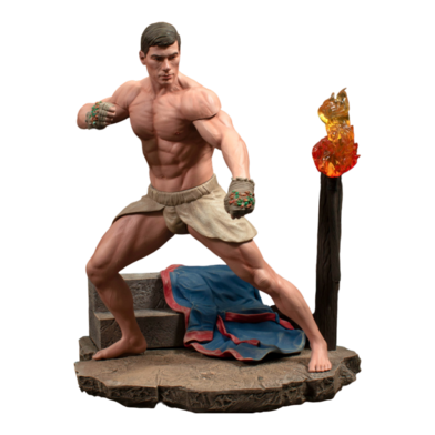 Surrounded by torches and rock formations, this 10-inch PVC sculpture of JCVD depicts him with wrapped fists and loincloth, and represents one of his most memorable career moments.