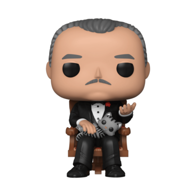 Here, Pop! Vito Corleone, dressed in his tuxedo, is seated with a cat in an iconic scene.