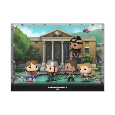 Complete your Back to the Future Part II lineup with this Deluxe Pop! Moment featuring the iconic Hoverboard Chase across the pond!