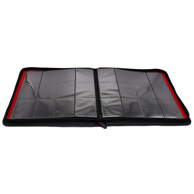 Holds 480 double or single sleeved, standard sized cards. 20 side loading acid and PVC free pages. Additional fly leaf before the first and last pages for added protection. Real velvet interior. Heavy gauge tough zipper. Padded Saffiano exterior.