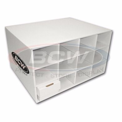 The BCW Card House is a unique storage unit that will house an entire collection. Make your own card catalogue for your hobby. This unit is constructed of white corrugated paper and has a 200 lb. test strength. Houses twelve 800ct 2-piece boxes (sold separately). Holds up to 9600 standard sized trading cards Exterior Dimensions (WxHxD): 18 x 11 x 15