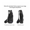 The DeckSlimmer can hold 140 single-sleeved cards, 120 double-sleeved cards, 100 triple-sleeved cards, or 270 cards without sleeves all while maintaining the core functionality of transforming into its extra slim form. The lid features magnet strips to ensure cards remain safe inside the deckbox when closed.