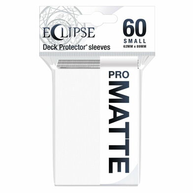 Protect your cards during gameplay with new Eclipse Matte Small Deck Protector sleeves! The Eclipse Series of Deck Protector sleeves are made with multi-layer film including an added black layer to prevent the back of the cards from showing through the colored side. The Eclipse Matte sleeves use matte clear material on the card face side to show the card while minimizing glare and offering a unique, smooth, and professional shuffling experience. This product is sized to fit small (Yu-Gi-Oh!) size gaming cards with dimensions of 62mm X 89mm, and is made with archival-safe (non-PVC) film. Each pack comes with 60 sleeves.