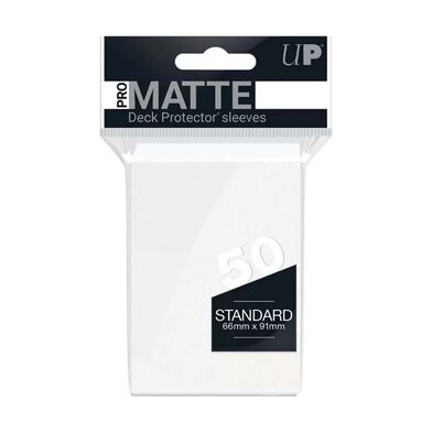 Made with acid-free, non-PVC polypropylene materials, our PRO-Matte Deck Protector sleeves will keep your cards safe from scratches and wear. The matte finish helps minimize glare during play, while the textured matte back keeps cards from sticking together and provides a smooth shuffle. Each pack includes 50 standard size sleeves, which fit both Pokémon and Magic: the Gathering trading cards. You’ll know it’s Ultra PRO quality when you see the heat transferred holographic stamp.