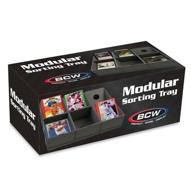 What is a modular sorting tray you ask? Well it’s just that; a set of individual cells that fit together to make a sorting tray to your special wants or needs. The BCW Modular Sorting Tray is made by combining individual card cells to form a grid sized for your card game, display, or sorting project. The individual cells slide together using special dovetail joints to form a sturdy tray. The base in each card cell can be placed at the bottom for card storage, or moved to an angled position for card sorting and displaying. When the card cells are in the storage position, the tray is stackable. The card cells are large enough to store and display cards in toploaders, or display cards in magnetic holders. The card cells are large enough to accommodate cards in sleeves, toploaders, or magnetic holders, although magnetics will only fit when the riser in the cell is up (sorting mode). The card cells are sold in packs of six, and can be combined with additional cells to create the perfect tray for your project. The Modular Sorting Tray is excellent for sports cards, Magic the Gathering, Pokemon, Dominion, Catan, Machi Koro, Ascension, Legendary, Clank, Firefly, and many others games. Cells slide together to form your own custom sorting tray. Cells can be set to either inclined or flat for your preference. Cells are sized to sort toploaders, sleeves, and magnetics. Many different uses.