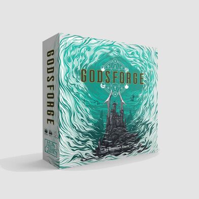 Godsforge features simultaneous play, with each player attacking the player to their left and defending against the player on their right. On a turn, everyone simultaneously rolls four dice, then each player lays one of their four cards face down in front of them. In any order you want, players reveal those cards, paying the cost of them via specific numbers on rolled dice, the sum of rolled dice, veilstones, or a combination of the above. On the dice, 1s can be any number you wish, while an unused 6 can be spent to acquire a veilstone.