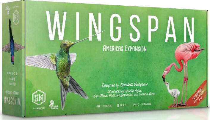 This fourth Wingspan expansion explores the birds of Mexico, Central America, South America, and the Caribbean. This incredibly biodiverse and abundant region is home to more than 3,000 bird species, including the birds with the smallest and largest wingspans in the world (the Bee Hummingbird and Snowy Albatross, respectively).