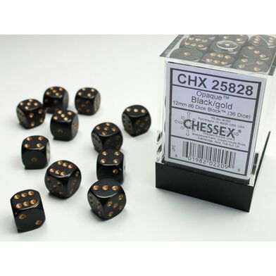 Dice - Opaque 12mm d6 (36 Dice) Black/gold