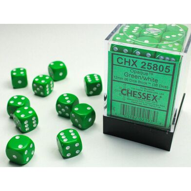 Dice - Opaque 12mm d6 (36 Dice) Green/white