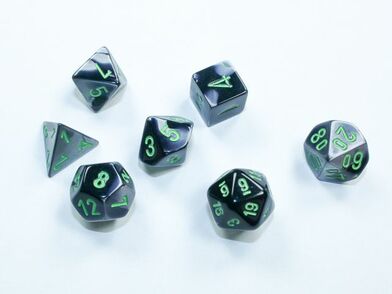 Dice - Gemini Mini-hedral Black-Grey/green 7-Die Set