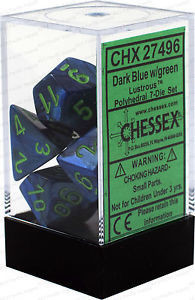 Dice - Lustrous Polyhedral Dark Blue/Green (7 Dice in Display)